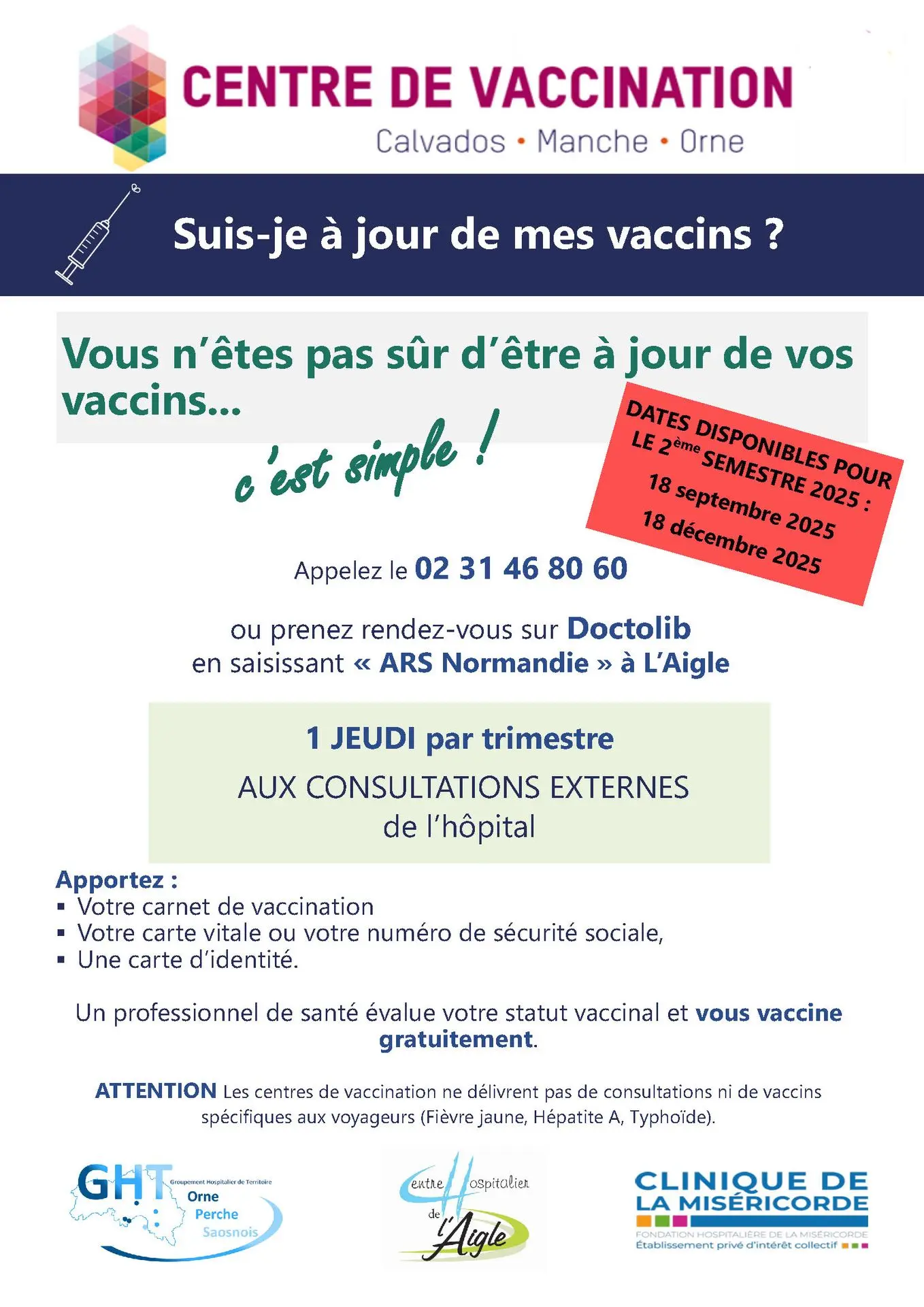 Le Centre de vaccination (Calvados - Manche - Orne) est à votre écoute pour évaluer votre statut vaccinal et vous vaccine gratuitement.